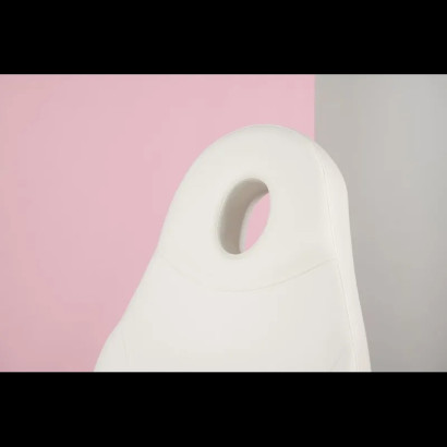 Camilla de estética de 3 secciones con estructura muy estable. Equipada con 3 motores que controlan la altura, la inclinación del respaldo y del reposapiés. Reposabrazos abatibles y extraíbles. Agujero facial con cojín reposacabezas