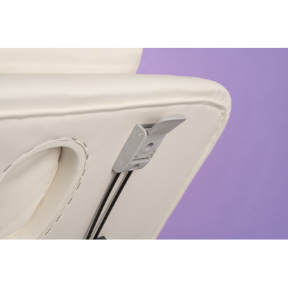 Sillón de estética con 3 motores que regulan la altura, la inclinación del respaldo y del reposapiés. Colchón ergonómico de 12 cm de grosor con tapizado en PU blanco de alta calidad, ideal para tratamientos de estética, bienestar y masaje. Incorpora función CPR para posición de emergencia, sistema de bloqueo de seguridad y mando multifunción