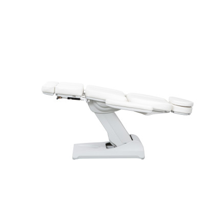 Camilla eléctrica de alta gama con sistema de rotación, diseñada para ofrecer la máxima versatilidad en tratamientos estéticos, wellness y médicos. Equipada con 4 motores que permiten regular la altura, el respaldo, el asiento y el reposapiés. Incorpora giro de 110°, reposabrazos abatibles y sistema de memoria de 3 posiciones. Tapizado en PU blanco e beige de alta calidad, resistente y fácil de limpiar.
