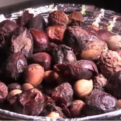 El aceite de Argán, también conocido como oro del desierto, es un producto cosmético y comestible que se obtiene tras un proceso de secado de los frutos del árbol de Argán (Argania spinosa) expuestos al sol. Una vez secos, se extrae la semilla de la almendra manualmente y pasa a prensarse en frío. Esto constituye un proceso mecánico ausente de productos químicos. “Debido a que la extracción es en frío, sin torrefactar las semillas, este aceite es dorado claro y su olor apenas es apreciable”.