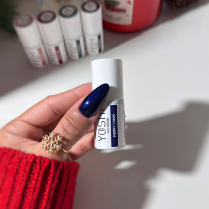 El UV VARNISH 625 – FAIRY WHISPERS de la colección Holly Holiday de Yoshi es un esmalte híbrido UV/LED que evoca la magia de las noches estrelladas de Navidad. Este azul marino profundo, adornado con partículas de purpurina, recuerda a un cielo estrellado y aporta un aura de misterio y sofisticación a tu manicura. Perfecto para ocasiones elegantes, este esmalte es ideal para las fiestas de Navidad, reuniones familiares y veladas festivas.