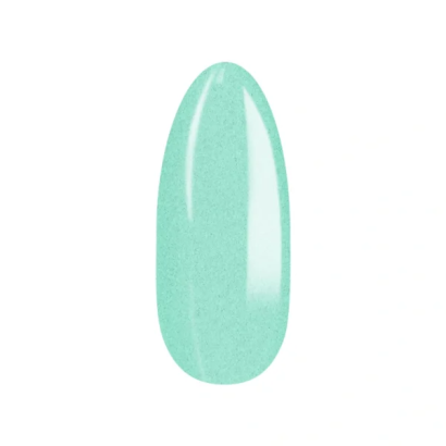 Esmalte semipermanente UV/LED verde menta semitransparente con partícula brillante sutil. Textura cremosa y acabado luminoso fresco.