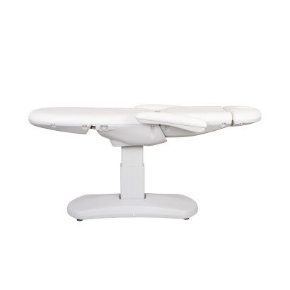 Fauteuil d\'esthétique doté de 3 moteurs permettant de régler la hauteur, l\'inclinaison du dossier et du repose-pieds. Matelas ergonomique de 12 cm d\'épaisseur avec un revêtement en PU blanc de haute qualité, idéal pour les soins esthétiques, le bien-être et les massages. Il intègre une fonction CPR pour les positions d\'urgence, un système de verrouillage de sécurité et une commande multifonction.