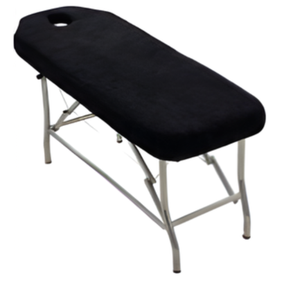 Housse de table professionnelle en tissu éponge 100 % coton, conçue pour les tables esthétiques avec ou sans trou facial. Haute densité 400 g/m² pour un confort optimal, une excellente absorption et une résistance adaptée à un usage intensif.