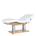 Le fauteuil Pira est conçu spécifiquement pour les soins des pieds dans les spas et salons de beauté. Son rembourrage en PU blanc garantit un confort optimal. Le dossier se règle facilement grâce à un système à gaz, offrant ainsi une position personnalisée pour chaque client. Un espace de rangement est intégré sous le siège pour un bac à pédicure, ce qui facilite l'organisation des accessoires nécessaires. De plus, il possède un repose-pieds réglable pour plus de confort pendant les soins.