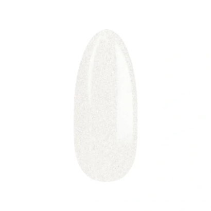 Vernis semi-permanent UV/LED blanc lait semi-transparent avec fine particule scintillante. Texture crémeuse, couvrance en 2 couches fines et finition lumineuse élégante.